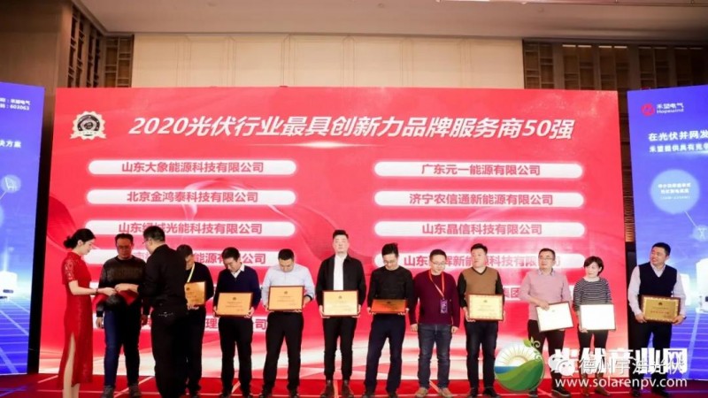 宇浩光伏榮獲2020光伏行業(yè)最具創(chuàng)新品牌服務(wù)商50強獎