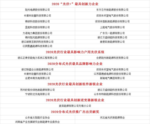 12月4日,“「PV TOP 50」2020光伏創(chuàng)新榜”頒獎(jiǎng)典禮,在山東濟(jì)南圓滿(mǎn)落下帷幕!