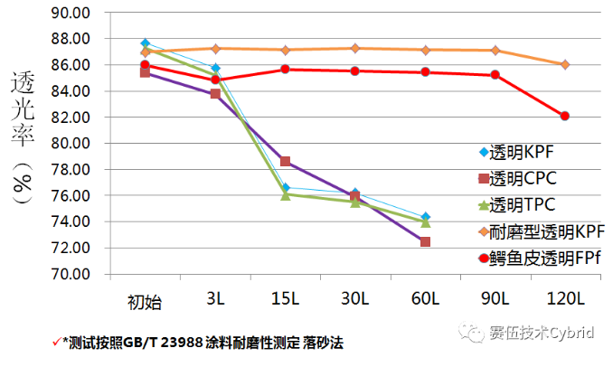 透光性方面,在400-1000nm范圍內(nèi),鱷魚皮FPf背板透光率在88%左右,比傳統(tǒng)FPf透明背板透光率高2個(gè)百分點(diǎn);硬度方面,無(wú)論是落砂法測(cè)試還是吹砂法測(cè)試,鱷魚皮透明背板都表現(xiàn)出更明顯優(yōu)勢(shì)。“傳統(tǒng)透明背板在經(jīng)歷15L落砂后容易刮花,透光率大幅下滑,但鱷魚皮透明背板即使經(jīng)歷90L以上落砂,仍能保證85%以上透光率,在風(fēng)沙較強(qiáng)地區(qū)可以放心使用。”