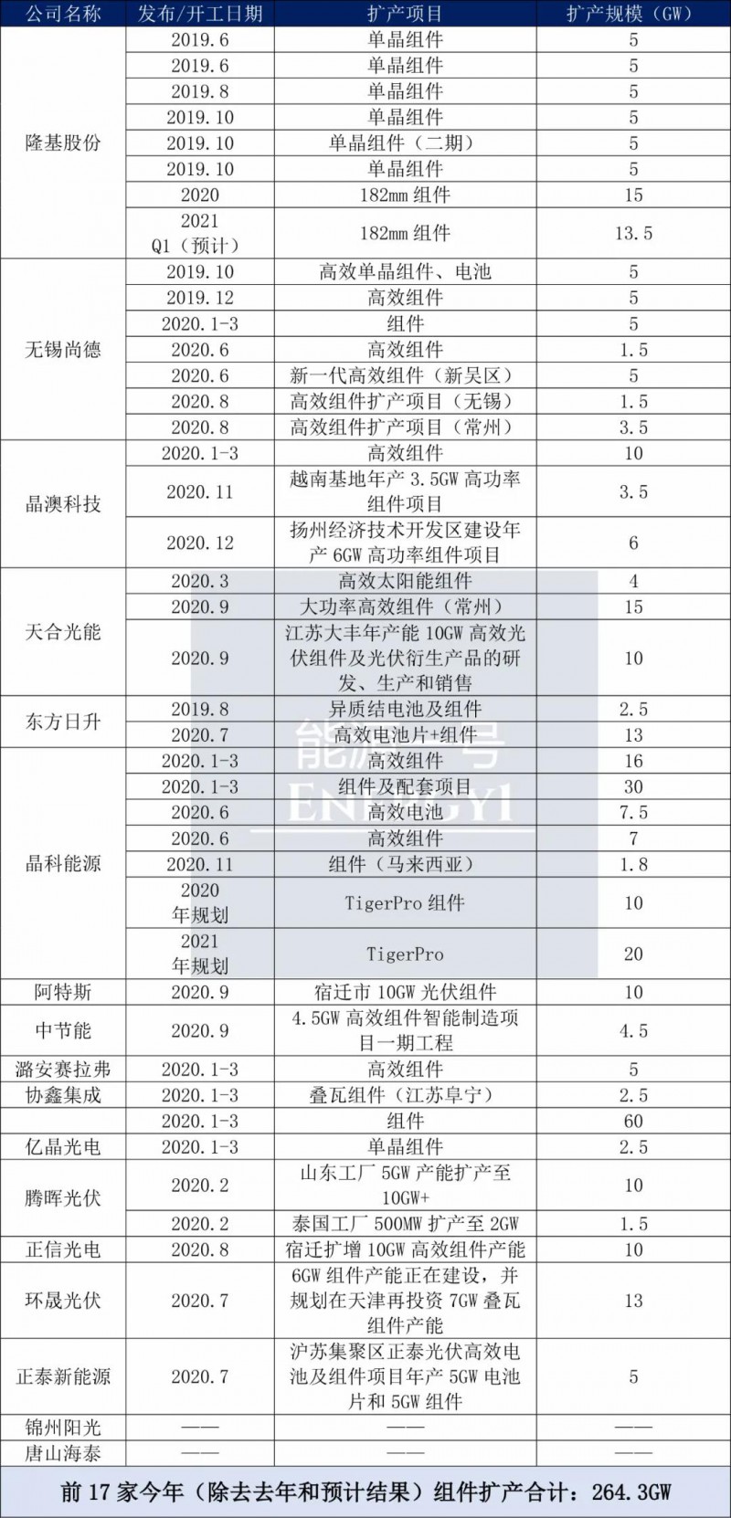 圖|前17家組件擴產(chǎn)概況