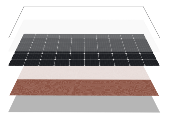 區(qū)別于傳統(tǒng)光伏組件結(jié)構(gòu),去除正面焊帶設(shè)計(jì),電流運(yùn)動均在背面進(jìn)行,減少正面遮擋,把組件正面受光面積利用至極致,實(shí)現(xiàn)轉(zhuǎn)換效率質(zhì)的提升,必然成為單玻組件“究極形態(tài)”。