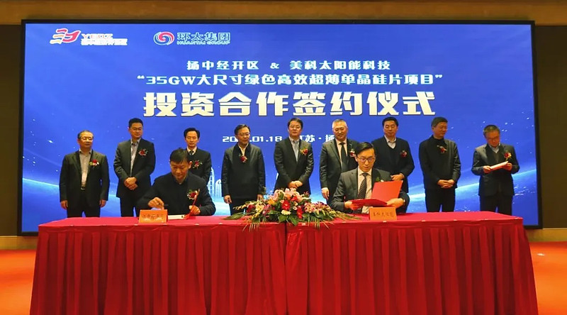 環(huán)太集團(tuán)、美科太陽能總裁王藝澄,揚(yáng)中經(jīng)濟(jì)開發(fā)區(qū)管委會(huì)主任仲斌簽訂協(xié)議