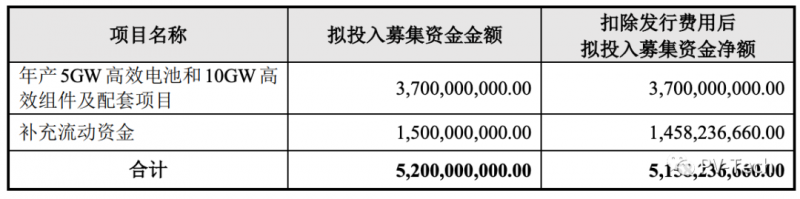 公告顯示,上述37億元資金來源于晶澳科技2020年10月進行的一次定增。2020年10月,晶澳科技定增募集資金總額不超過52億元,主要用于年產5GW高效電池和10GW高效組件及配套項目,義烏晶澳即為該項目的實施主體。