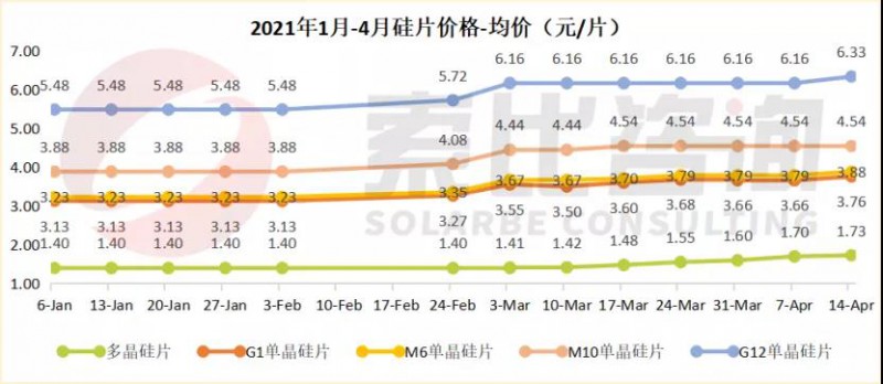 多晶硅片均價1.73元/片,環(huán)比上漲1.77%,最高成交價1.92元/片;