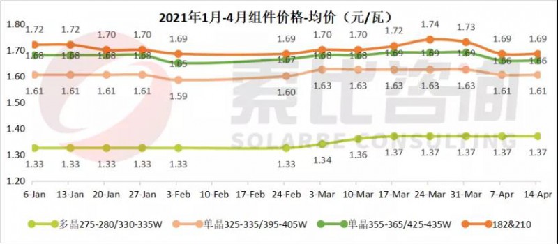 多晶275-280/330-335W均價1.37元/瓦,與上周持平,最高成交價1.42元/瓦;