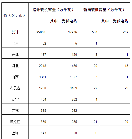 公布2021年一季度全國光伏發(fā)電建設(shè)運行情況,光伏累計裝機258.5GW,一季度新增裝機5.33GW,其中