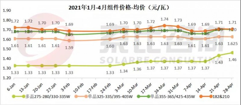 據(jù)索比咨詢(xún)統(tǒng)計(jì),2021年開(kāi)年至今組件價(jià)格持續(xù)處于高位。