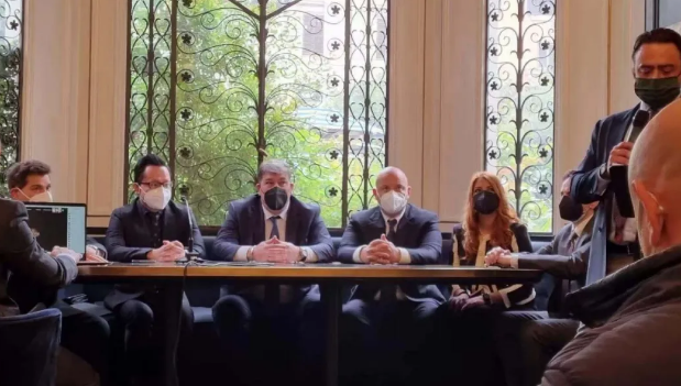新聞發(fā)布會(huì)現(xiàn)場(chǎng),意大利國(guó)家電視臺(tái)RAI同步直播
