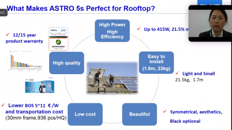 北京時(shí)間5月17日晚間,晶硅制造事業(yè)部胡豐華女士在德國(guó)TaiyangNews超高功率光伏組件在線會(huì)議上也面向全球線上首發(fā)正泰ASTRO 5s高效戶用組件。