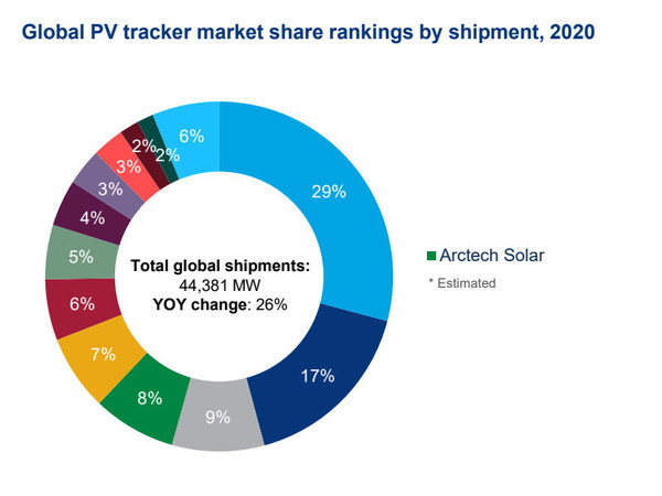 全球光伏跟蹤系統(tǒng)出貨量排名;數(shù)據(jù)來(lái)源:Wood Mackenzie Power& Renewables