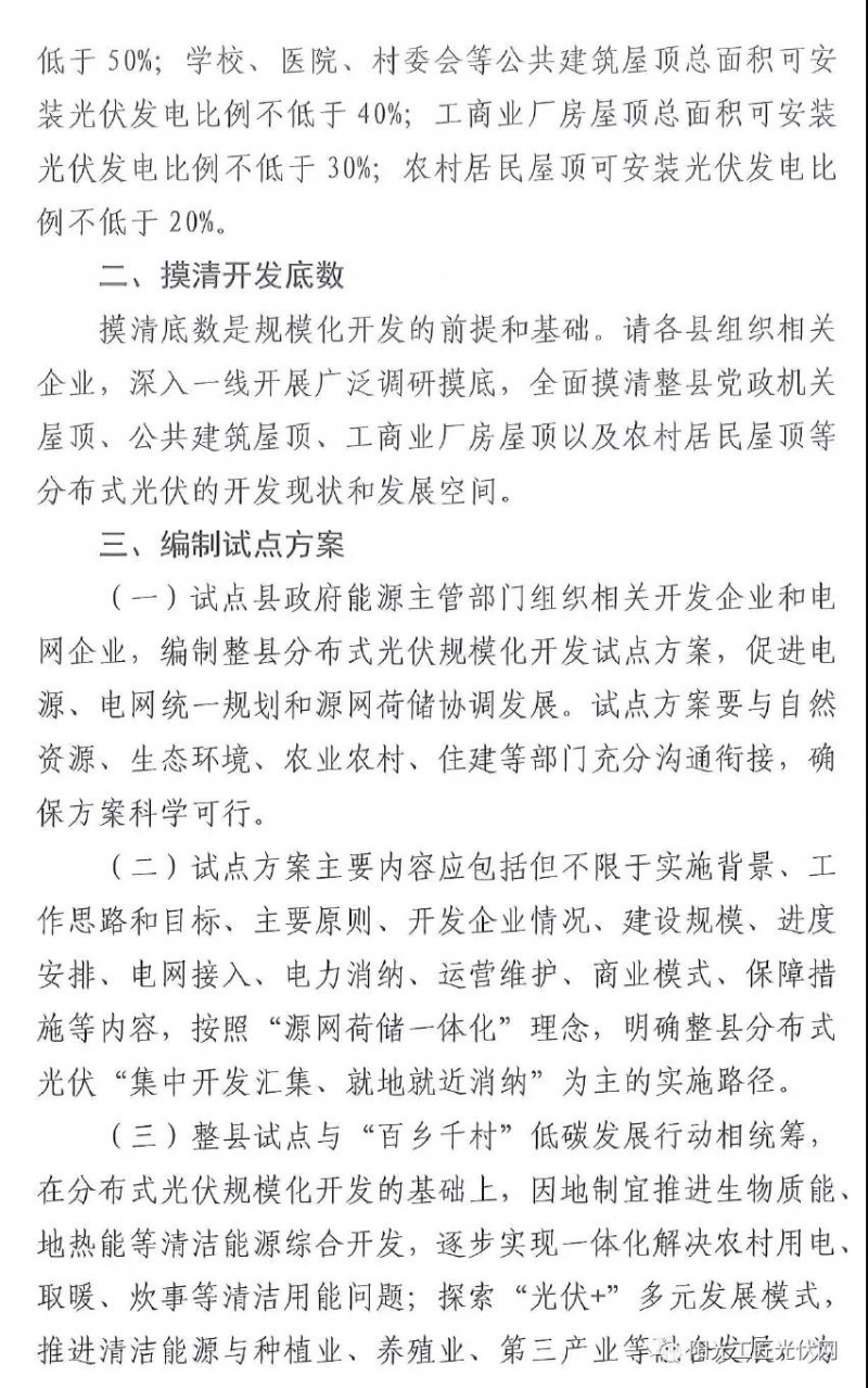 1)整縣分布式光伏規(guī)?;_發(fā)試點(diǎn)方案,要與自然資源、生態(tài)環(huán)境、農(nóng)業(yè)農(nóng)村、住建等部門充分溝通銜接,確保方案科學(xué)可行。