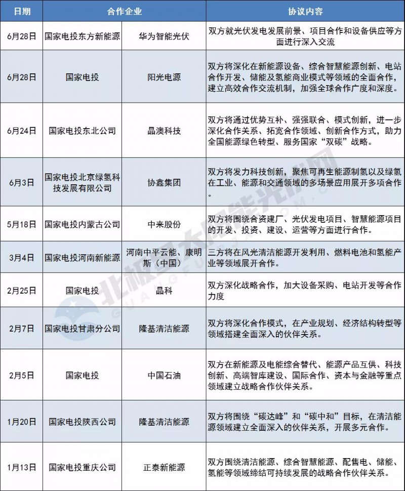 據(jù)不完全統(tǒng)計,2021年初至今,國家電投已經(jīng)先后與華為、晶澳、隆基、晶科、陽光電源、中來、協(xié)鑫、正泰等10家光伏企業(yè)簽訂戰(zhàn)略合作協(xié)議,與江蘇、山西、山東、遼寧、天津等多個地方政府簽訂光伏、儲能等新能源項目開發(fā)協(xié)議。顯然,國家電投正在由綜合能源集團轉(zhuǎn)型為清潔能源企業(yè)的路上全力進發(fā)。