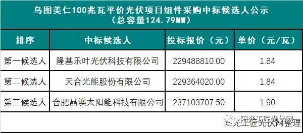 最低1.84元/瓦丨青海烏圖美仁100兆瓦平價(jià)光伏項(xiàng)目組件中標(biāo)候選人公示