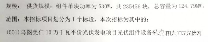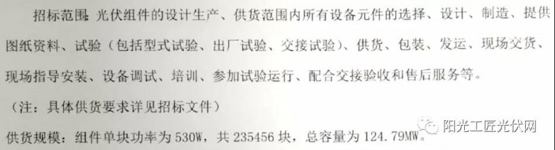 項(xiàng)目光伏組件設(shè)備采購(gòu)中標(biāo)候選人公示,隆基樂葉光伏以1.84元/瓦位列第一候選人,該項(xiàng)目總?cè)萘繛?24.79MW,單塊組件功率為530W,共235456塊。