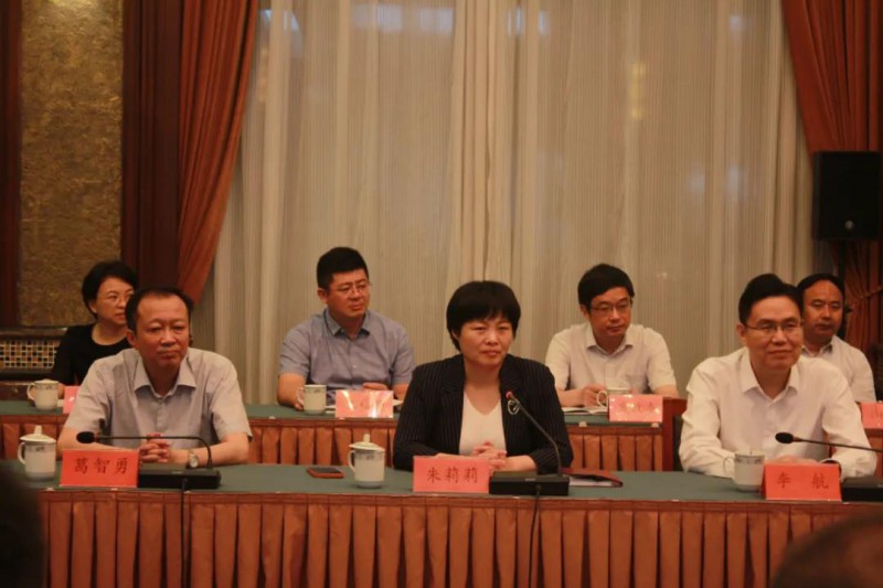 圖為江都區(qū)區(qū)委書記朱莉莉致辭