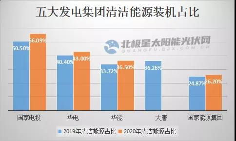 2020年國家電投清潔能源裝機占比高達56.09%,是五大發(fā)電集團的領(lǐng)跑者。截至2020年底,國家電投風(fēng)電、光伏裝機達到6049萬千瓦,躍居全球第一。其中,光伏累計裝機為2961萬千瓦,2020年其新增光伏裝機1048萬千瓦,約占去年全國光伏裝機的¼。