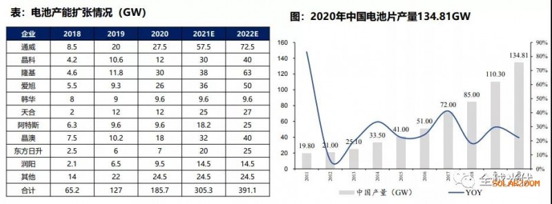 國內(nèi)PERC產(chǎn)能快速擴(kuò)張,2021年看結(jié)構(gòu)性機(jī)會(huì)。