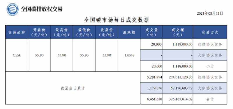 全國碳市場每日成交數(shù)據(jù)20210811