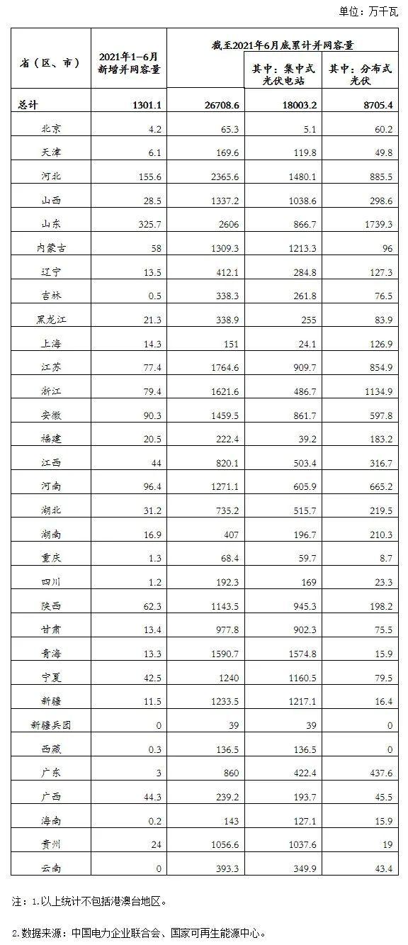 國(guó)家能源局發(fā)布2021年上半年全國(guó)光伏發(fā)電建設(shè)運(yùn)行情況
