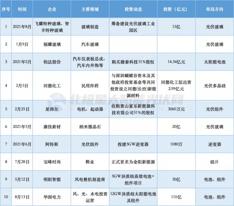 據(jù)統(tǒng)計(jì),僅2021年至今8個(gè)多月的時(shí)間,已經(jīng)有29家企業(yè)、攜241億元以上巨資進(jìn)入光伏行業(yè)。