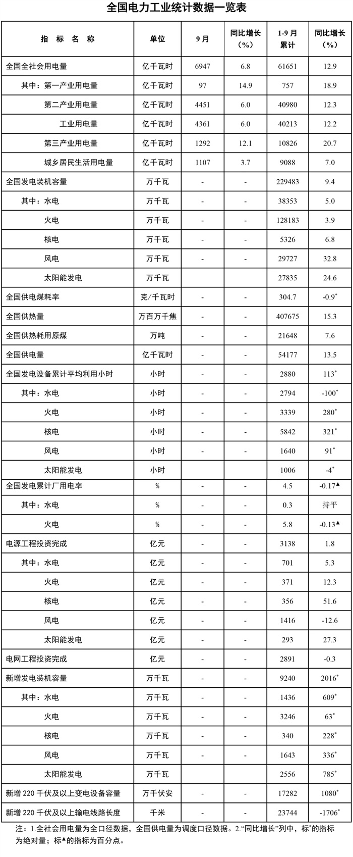 國家能源局發(fā)布1-9月份全國電力工業(yè)統(tǒng)計數(shù)據(jù)。截至9月底,全國發(fā)電裝機容量22.9億千瓦,同比增長9.4%。其中,風電裝機容量約3.0億千瓦,同比增長32.8%。