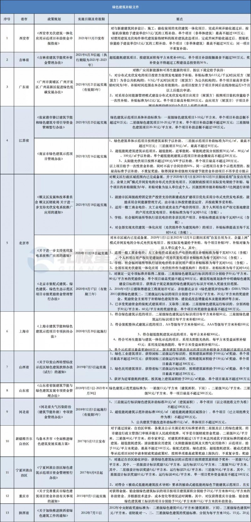 據(jù)統(tǒng)計(jì),目前吉林、廣東、江蘇、西安、北京等14個省市明確發(fā)布了BIPV相關(guān)補(bǔ)貼政策,補(bǔ)貼力度從0.3-0.4元/度,補(bǔ)助限額從100-300萬元各有不同,具體補(bǔ)貼情況詳見下表: