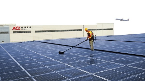 民航局及首都機(jī)場集團(tuán)公司制定了“打贏藍(lán)天保衛(wèi)戰(zhàn)三年行動計劃”,作為首都機(jī)場集團(tuán)成員企業(yè)的領(lǐng)導(dǎo)者,航港公司董事總經(jīng)理胡天木親自部署,積極落實相關(guān)指示。2021年,“碳達(dá)峰”、“碳中和”被首次寫入政府工作報告。為響應(yīng)天竺綜合保稅區(qū)綠色低碳的發(fā)展思路,作為順義臨空經(jīng)濟(jì)區(qū)域的核心骨干企業(yè),航港公司主動扮演“低碳發(fā)展”先行者的角色。公司攜手園區(qū)180家客戶,通過不斷投入和創(chuàng)新,取得一系列階段性成果,其中園區(qū)屋頂分布式光伏項目是最具代表性的成果之一,逐步實現(xiàn)“減碳”和區(qū)域可持續(xù)發(fā)展目標(biāo)。