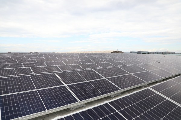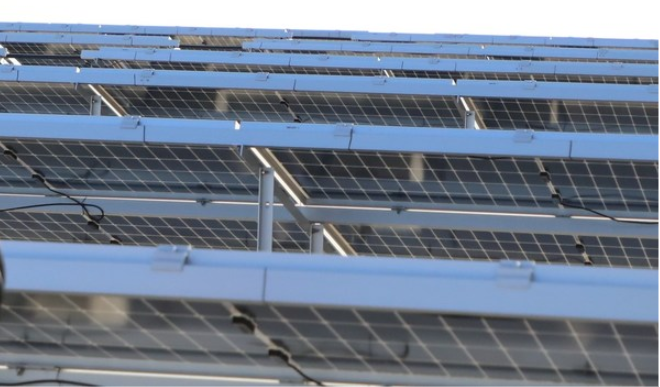 根據(jù)物流園區(qū)的經(jīng)營特點,航港公司選擇利用園區(qū)約35萬平米庫房屋頂建設(shè)分布式光伏項目,規(guī)劃了“航港光伏電站一、二、三期項目”,總裝機(jī)規(guī)模為26.61MW,其中口岸操作區(qū)和國內(nèi)貨運(yùn)站裝機(jī)規(guī)模13MW,保稅倉儲區(qū)6.4MW,物流園和辦公區(qū)6.6MW。項目三期并網(wǎng)完成之后,航港公司分布式光伏項目年綠色發(fā)電能力預(yù)計在3200萬千瓦時以上,減排二氧化碳超過29952噸,園區(qū)用電自給率超過60%,“碳中和”目標(biāo)實現(xiàn)率超過50%,帶來的減排規(guī)模相當(dāng)于近10萬棵大樹的貢獻(xiàn)。值得一提的是,航港園區(qū)的光伏項目采用雙面發(fā)電組件,正面接受陽光照射,背面接收散射、折射的光,發(fā)電效率提高8-10%。