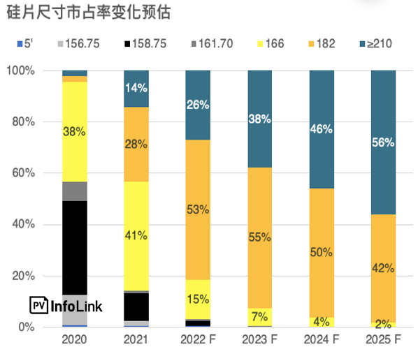 2022年大硅片市占率近80%(來源:PV Infolink光伏技術(shù)趨勢報告2022年2月)