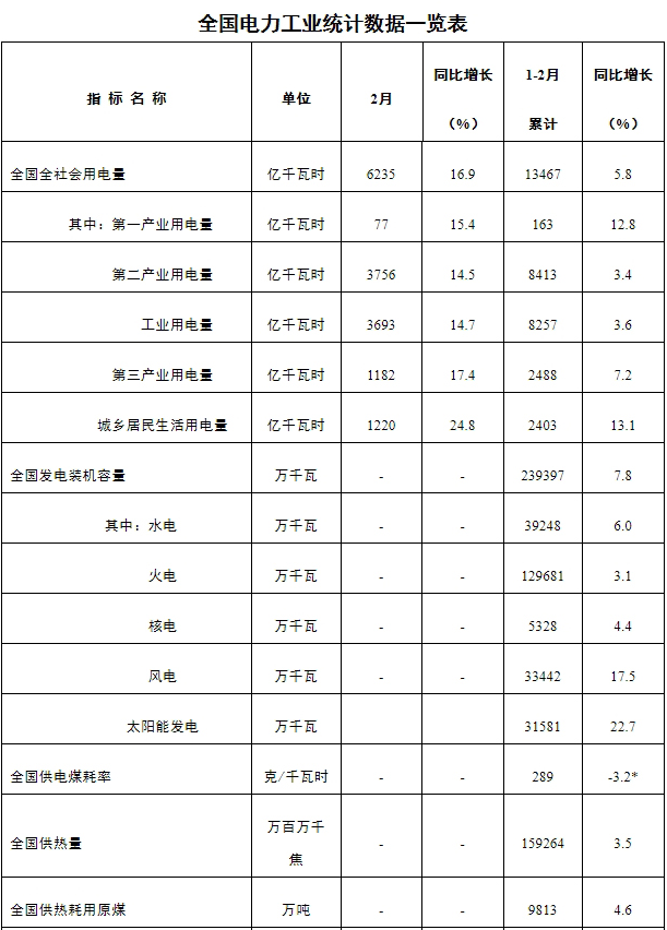 注:1.全社會用電量為全口徑數(shù)據(jù),全國供電量為調(diào)度口徑數(shù)據(jù)。2.“同比增長”列中,標*的指標為絕對量;標▲的指標為百分點。