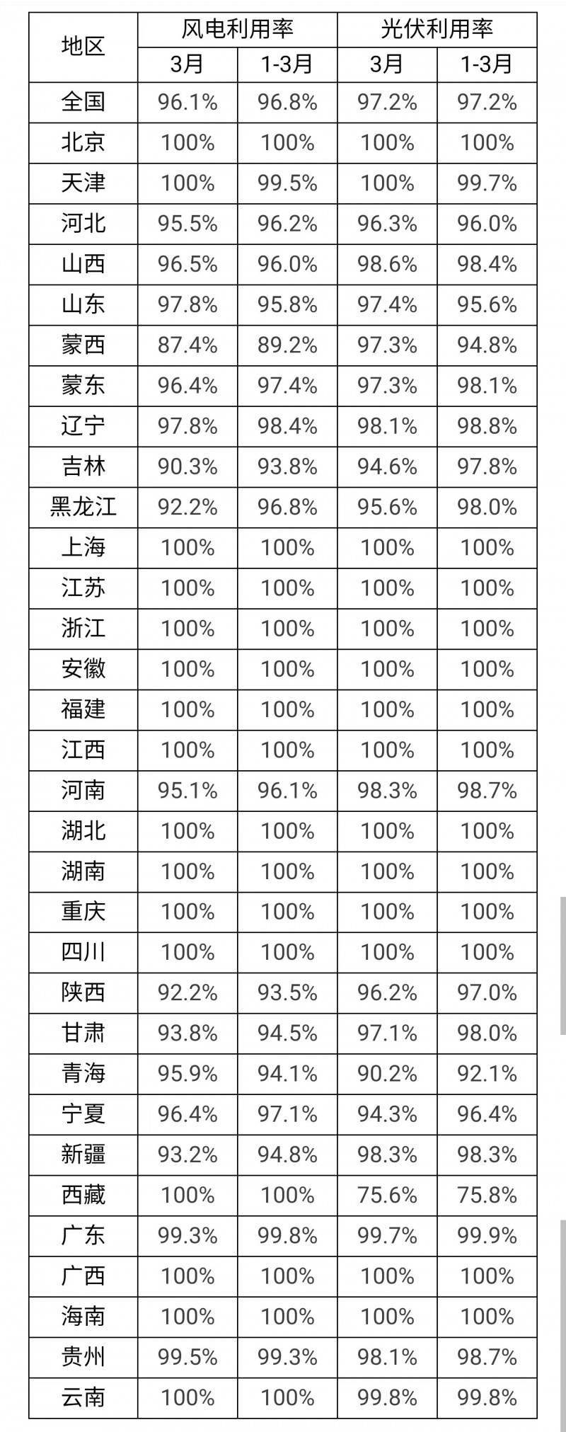 3月光伏利用率97.2%!河北、吉林、青海等地低于全國平均水平!