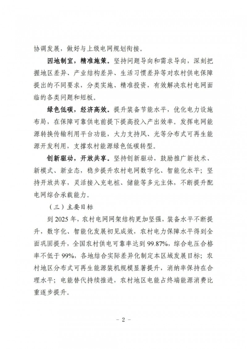 意見(jiàn)提出,到2025年,農(nóng)村電網(wǎng)網(wǎng)架結(jié)構(gòu)更加堅(jiān)強(qiáng),裝備水平不斷提升,數(shù)字化、智能化發(fā)展初見(jiàn)成效,農(nóng)村電力保障水平得到全面鞏固提升,全國(guó)農(nóng)村供電可靠率達(dá)到99.87%,綜合電壓合格率不低于99%,各地結(jié)合實(shí)際差異化制定本區(qū)域發(fā)展目標(biāo);農(nóng)村地區(qū)分布式可再生能源裝機(jī)規(guī)模顯著提升,消納率保持在合理水平;電能替代持續(xù)推進(jìn),農(nóng)村地區(qū)電能占終端能源消費(fèi)比重逐步提升。