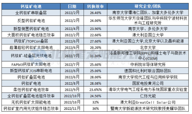 2022年8月,科技部等九部門(mén)印發(fā)《科技支撐碳達(dá)峰碳中和實(shí)施方案(2022―2030年)》,提出研發(fā)高效硅基光伏電池、高效穩(wěn)定鈣鈦礦電池等技術(shù),鈣鈦礦技術(shù)進(jìn)入被國(guó)家支持的范圍。