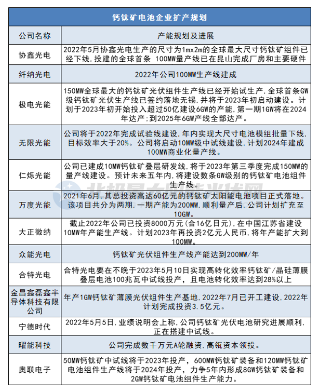 年初,纖納光電投資建設(shè)的100MW鈣鈦礦規(guī)?;a(chǎn)線建成投產(chǎn),目前公司正在規(guī)劃GW級(jí)生產(chǎn)線建設(shè),有望2023年投產(chǎn)。