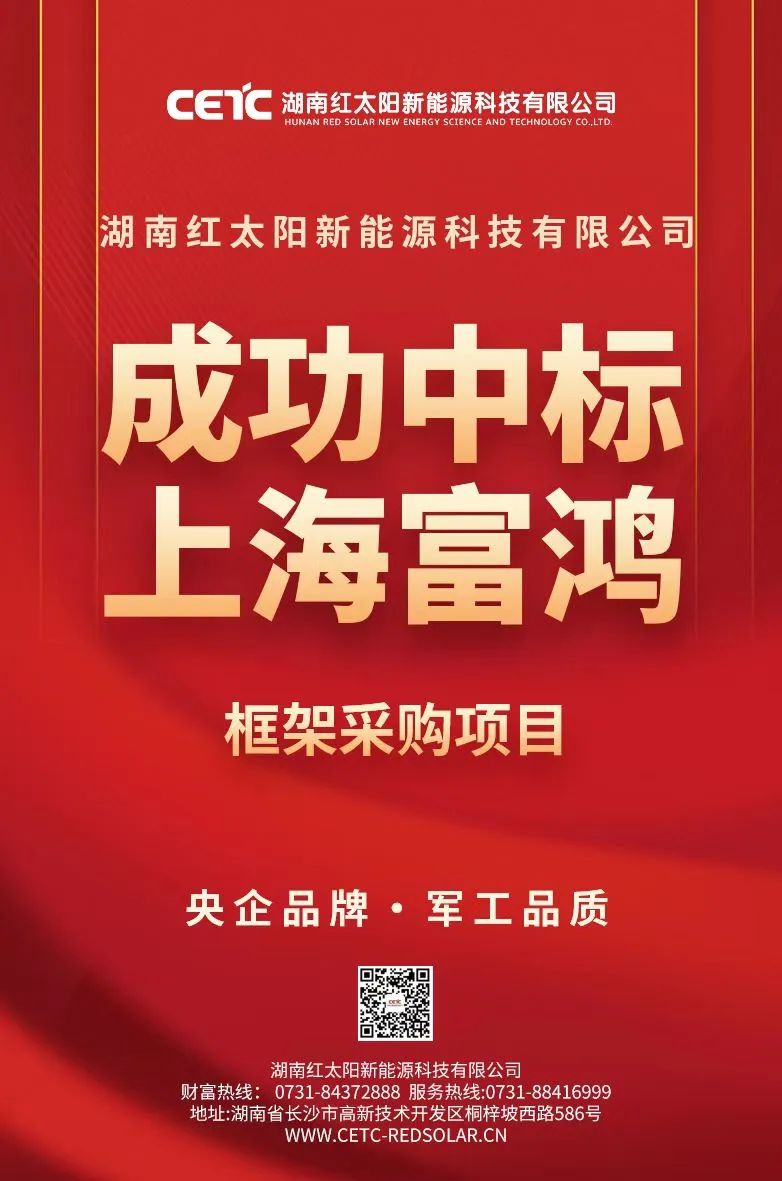 捷報頻傳,喜訊連連。4月12日,紅太陽新能源成功中標國電投集團集中采購項目,中標金額達3.3億元以上,并同時中標上海富鴻框架采購項目。