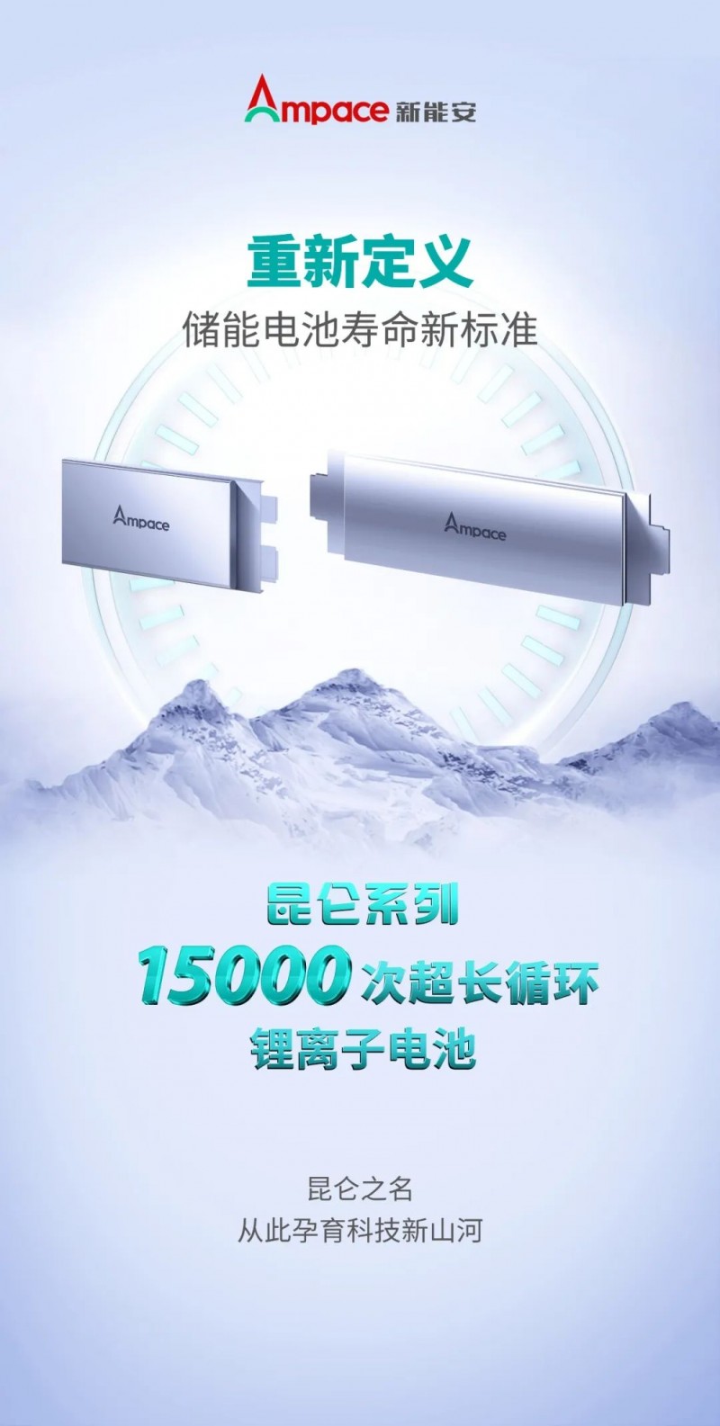 在主題為“新能智儲(chǔ) 聚量能安”的新品發(fā)布會(huì)上,Ampace新能安重磅首發(fā)昆侖系列15000次超長循環(huán)鋰電池,顛覆性革新鋰電池循環(huán)壽命行業(yè)極限,重新定義儲(chǔ)能電池壽命新標(biāo)準(zhǔn)。