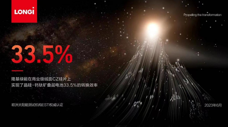 隆基宣布實現(xiàn)在商業(yè)級絨面CZ硅片上實現(xiàn)晶硅-鈣鈦礦疊層電池33.5%轉(zhuǎn)換效率