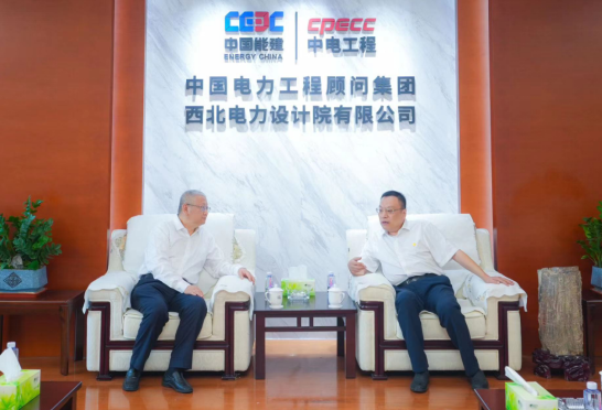 隆基綠能創(chuàng)始人、總裁李振國與西北院黨委副書記、總經(jīng)理、董事史東洽談交流