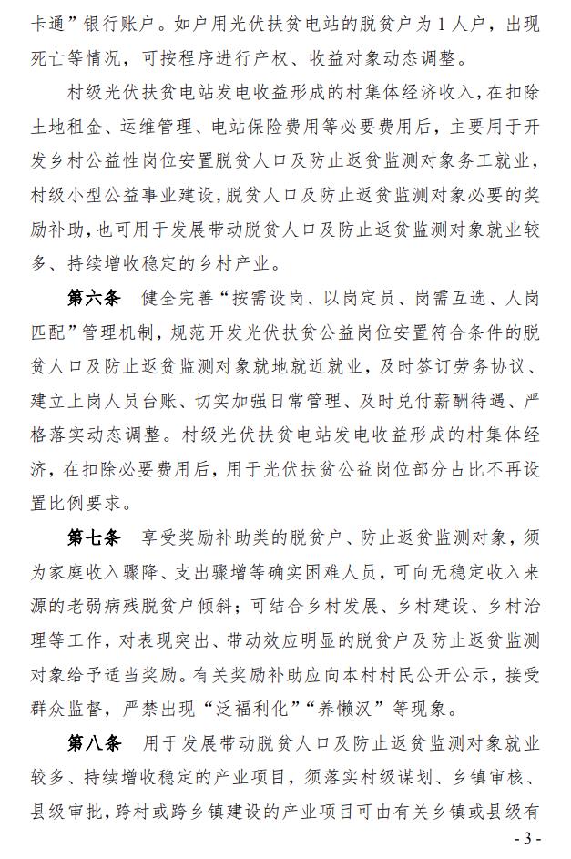 安徽省合肥市長豐縣人民政府正式印發(fā)《長豐縣光伏扶貧電站收益分配管理實施細則》,文件明確所指光伏扶貧電站包括戶用光伏扶貧電站、村級光伏扶貧電站。該辦法適用于長豐縣已納入國家可再生能源電價附加資金補助(光伏扶貧)第一、二、三批次目錄和第四批納入國家規(guī)模范圍的戶用、村級光伏扶貧電站。