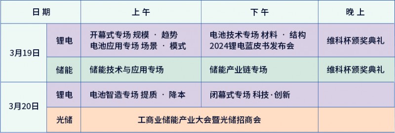本次大會為期兩天,共9大專場,分別為:鋰電6大專場、儲能2大專場、光儲1大專場。3月19日,維科杯2024鋰電行業(yè)年度評選頒獎典禮、儲能行業(yè)年度評選頒獎典禮將同期舉行,屆時將分別頒布9大、11大獎項(xiàng)?;湔l家,靜待揭曉。