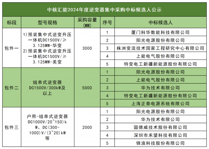 禾望、陽光、華為、錦浪等企業(yè)入圍中核匯能10GW光伏逆變器集采!