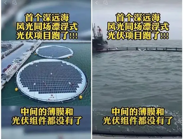 此外,技術問題也是一大挑戰(zhàn)。去年4月,一則“首個深遠海風光同場漂浮式光伏項目跑路”的視頻流傳網(wǎng)絡,在業(yè)內(nèi)引發(fā)關注。在網(wǎng)傳視頻中,電站組件和薄膜均已消失不見。經(jīng)過確認,該項目為國家電投山東半島南3號海上風電場20兆瓦深遠海漂浮式光伏500千瓦實證項目,位于山東省海陽市南側海域。專家表示,基于該項目的技術方案,失散的光伏組件和薄膜大概率不是“飄走了”,而是“沉底了”,推測可能為波浪條件、機械設備問題引發(fā)項目事故。
