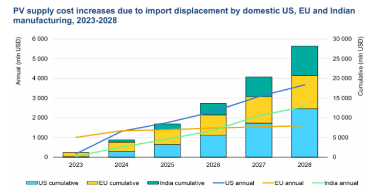 雖然光伏供應(yīng)鏈多樣化對于減少某些地區(qū)的過度集中是必要的措施,但這也給政府和消費(fèi)者帶來了額外的成本。