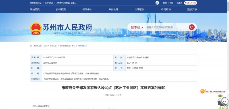 國(guó)家碳達(dá)峰試點(diǎn)(蘇州工業(yè)園區(qū))實(shí)施方案