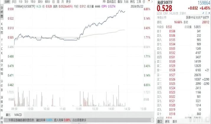 今日多只光伏板塊個股漲停,光伏50ETF(159864)前十大重倉股中,天合光能漲幅超17%,晶澳科技漲停,TCL中環(huán)漲停,通威股份漲超9%,隆基綠能等漲近7%。