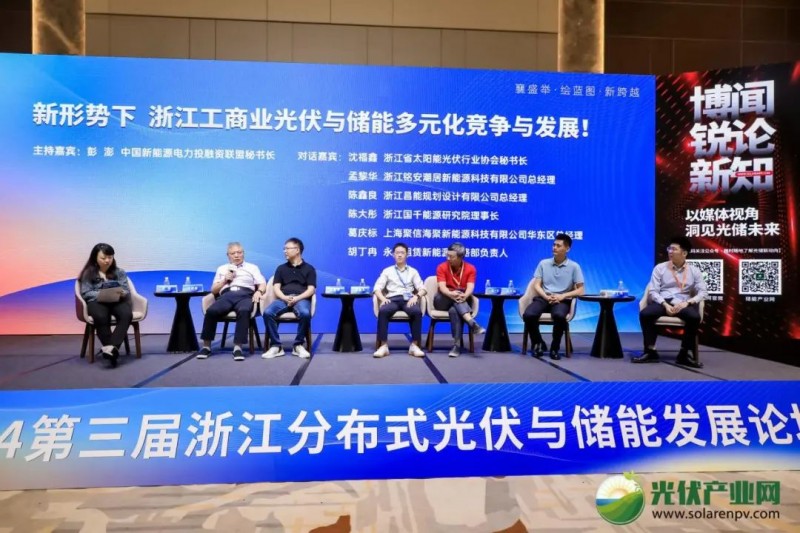 十余位行業(yè)大咖精彩的主題分享之后,中國新能源電力投融資聯(lián)盟秘書長彭澎與6位對話嘉賓圍繞“新形勢下浙江工商業(yè)光伏與儲能多元化競爭與發(fā)展!”展開了深入的探討與交流。