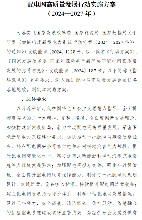 國(guó)家能源局關(guān)于印發(fā)《配電網(wǎng)高質(zhì)量發(fā)展行動(dòng)實(shí)施方案(2024—2027年)》的通知
