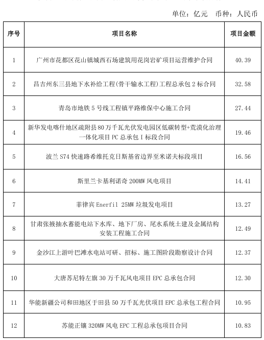 2024年7月,公司新簽合同金額在人民幣5億元以上的單個(gè)項(xiàng)目有,其中光伏項(xiàng)目3個(gè),詳情見下表: