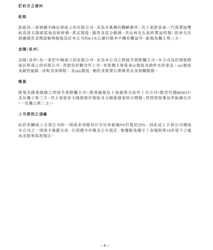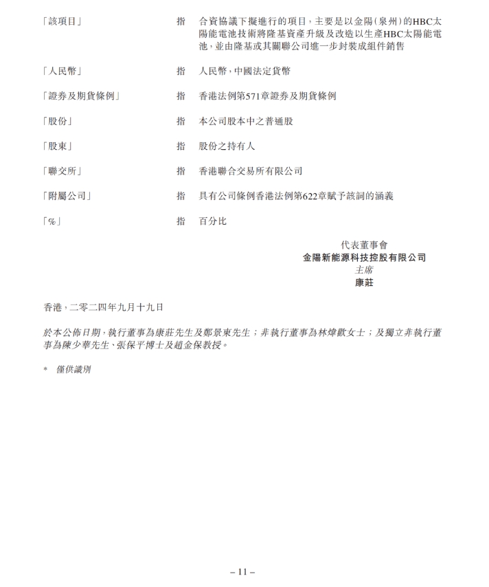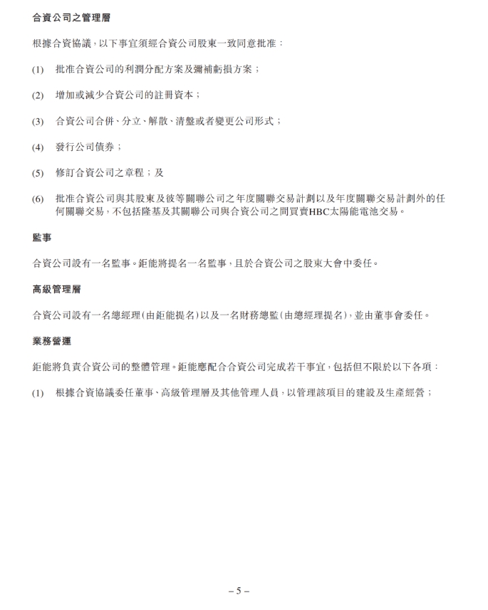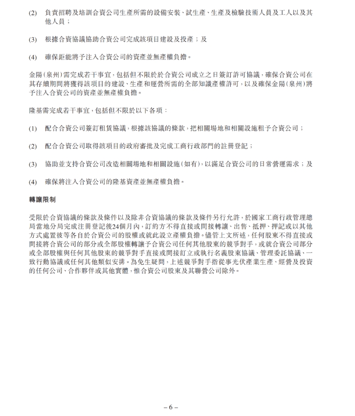 合資公司的名稱為金隆(西安)新能源科技有限公司,經(jīng)營范圍為生產(chǎn)及銷售太陽能電池,均以中國西安市市場監(jiān)督管理局或國家市場監(jiān)督管理總局最終核準(zhǔn)登記為準(zhǔn)。