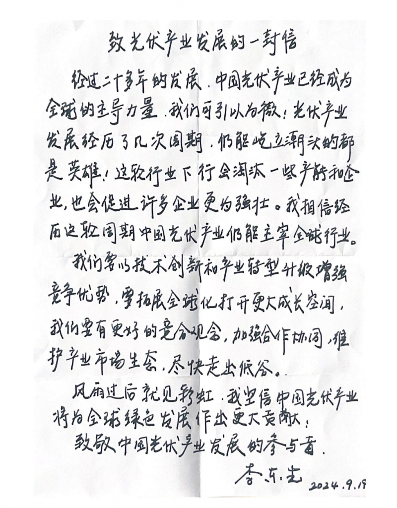 《致中國光伏的一封信》